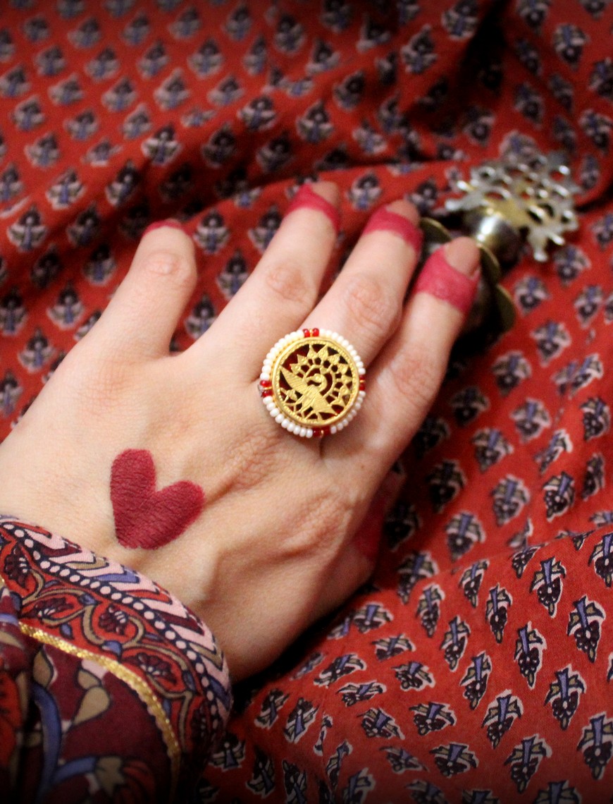 Tags: Thewa Ring, Gold Fused Ring, Rajasthani Jewelry, Handcrafted Ring, Traditional Indian Jewelry, Thewa Art, Statement Ring, Indian Heritage, Gold and Glass Ring, Ethnic Jewelry